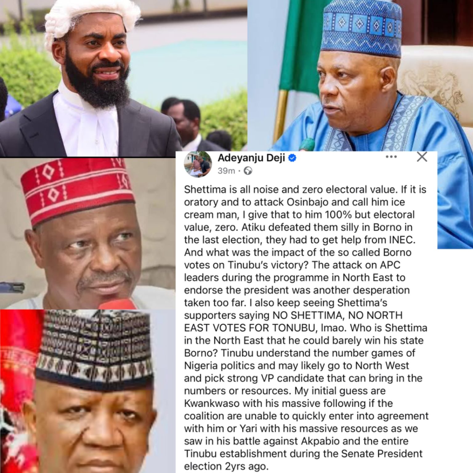 Adeyanju dismissed claims by Shettima’s supporters that the North East would withhold support from Tinubu if Shettima is not on the 2027 ticket, describing such posturing as laughable and baseless.