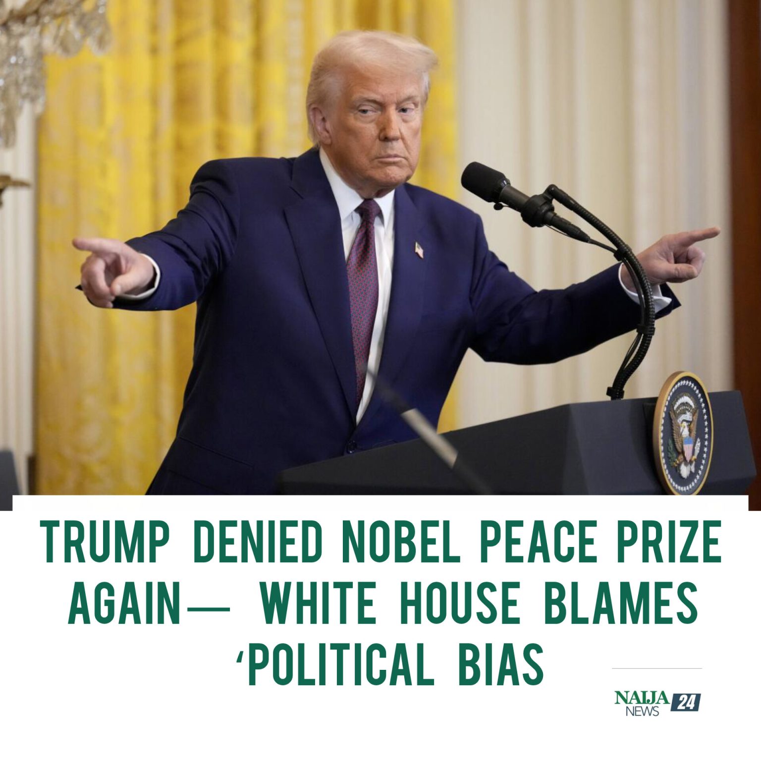 White House Fumes as Trump Snubbed for Nobel Peace Prize — “Politics Over Peace,” Says Aide