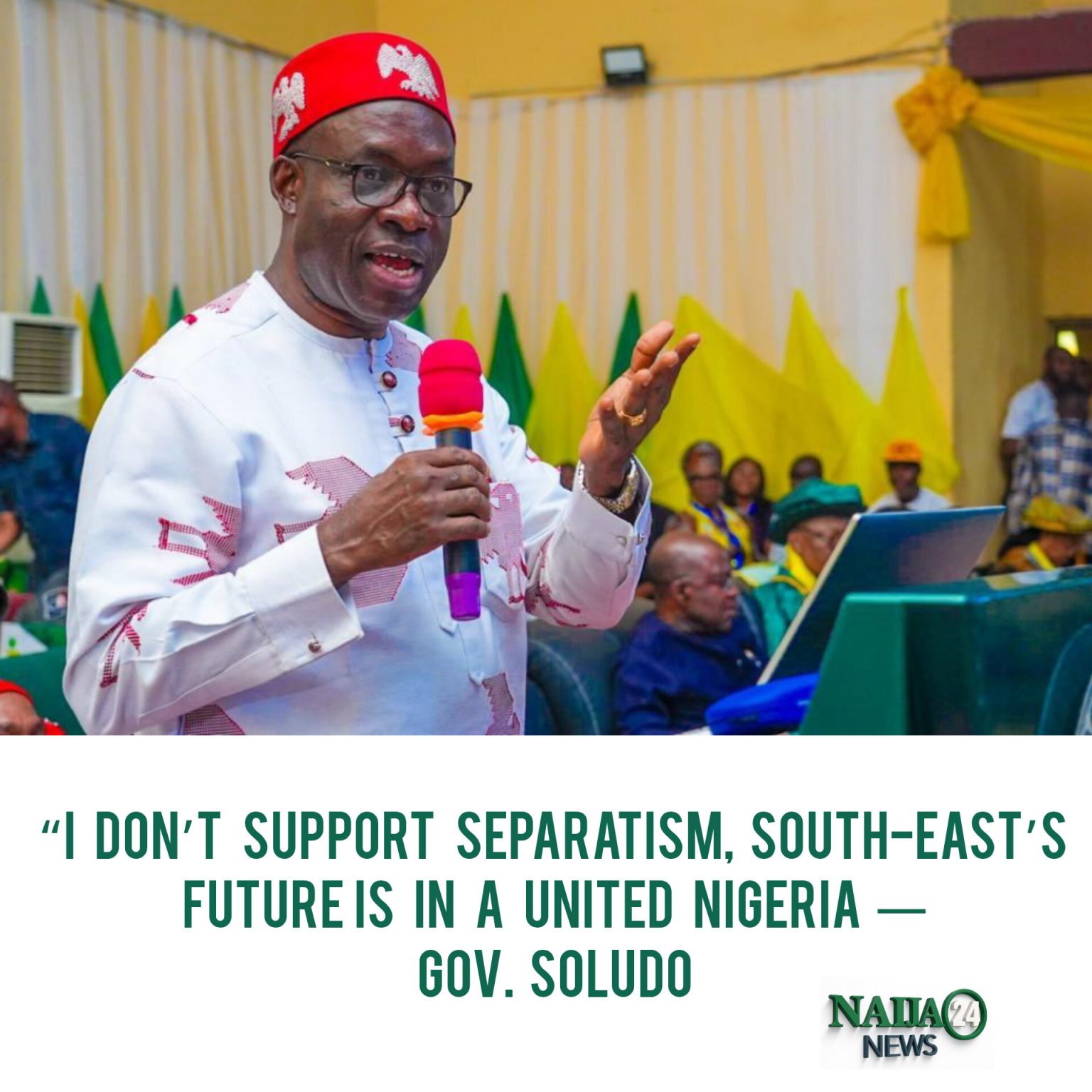 Governor Chukwuma Soludo of Anambra State has firmly rejected separatist agitation, insisting that the South-East’s progress is intrinsically tied to its unity with Nigeria.
