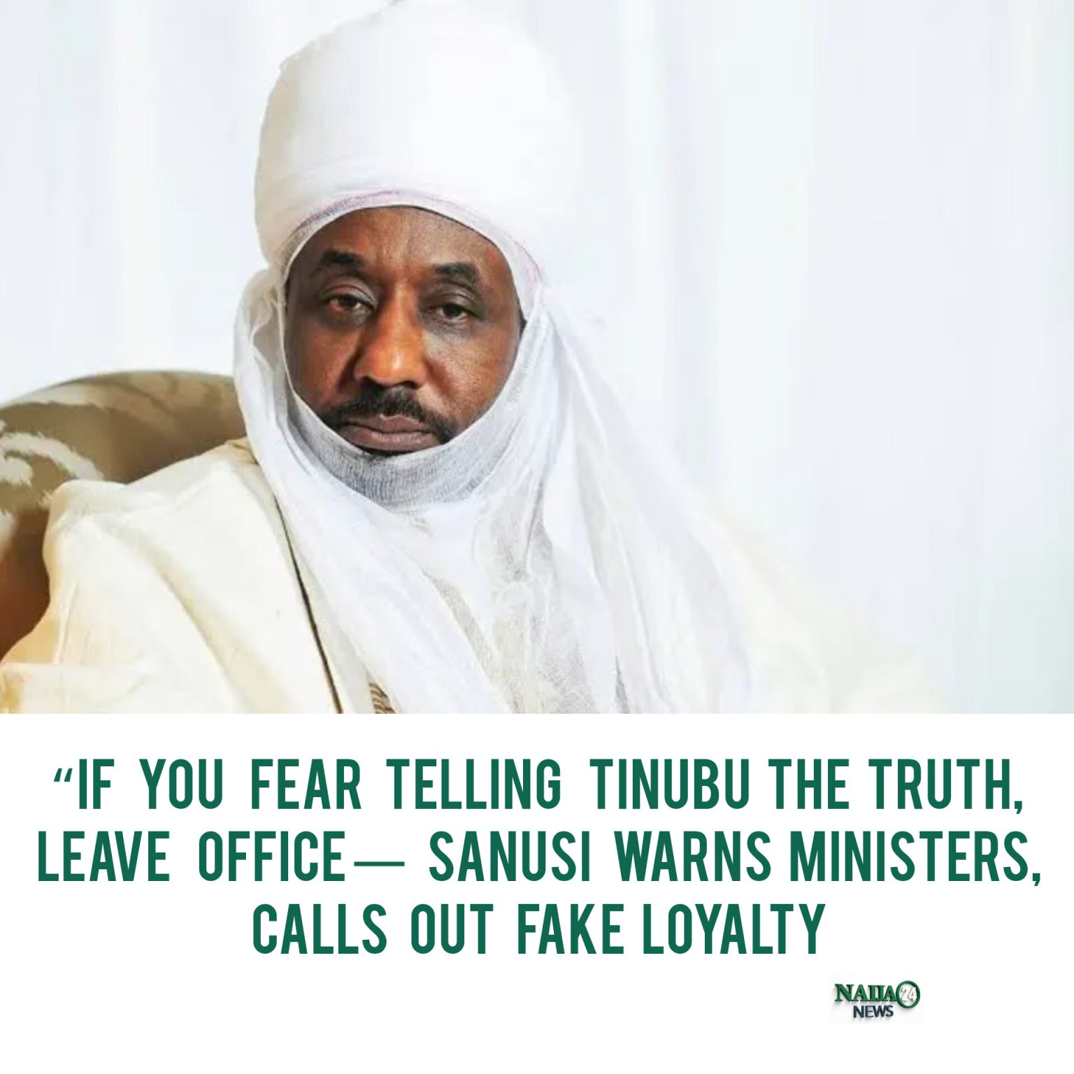 The Emir of Kano and former Central Bank Governor, Muhammadu Sanusi II, has issued a scathing rebuke to Nigeria’s ministers and presidential aides, warning them to stop turning government into a choir of praise singers instead of truth tellers.