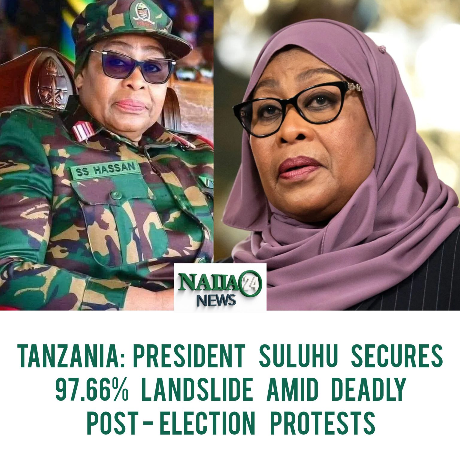 Tanzanian President Samia Suluhu Hassan has been declared winner of the country’s presidential election with a commanding 97.66% of the vote, the electoral commission announced on state television Saturday.