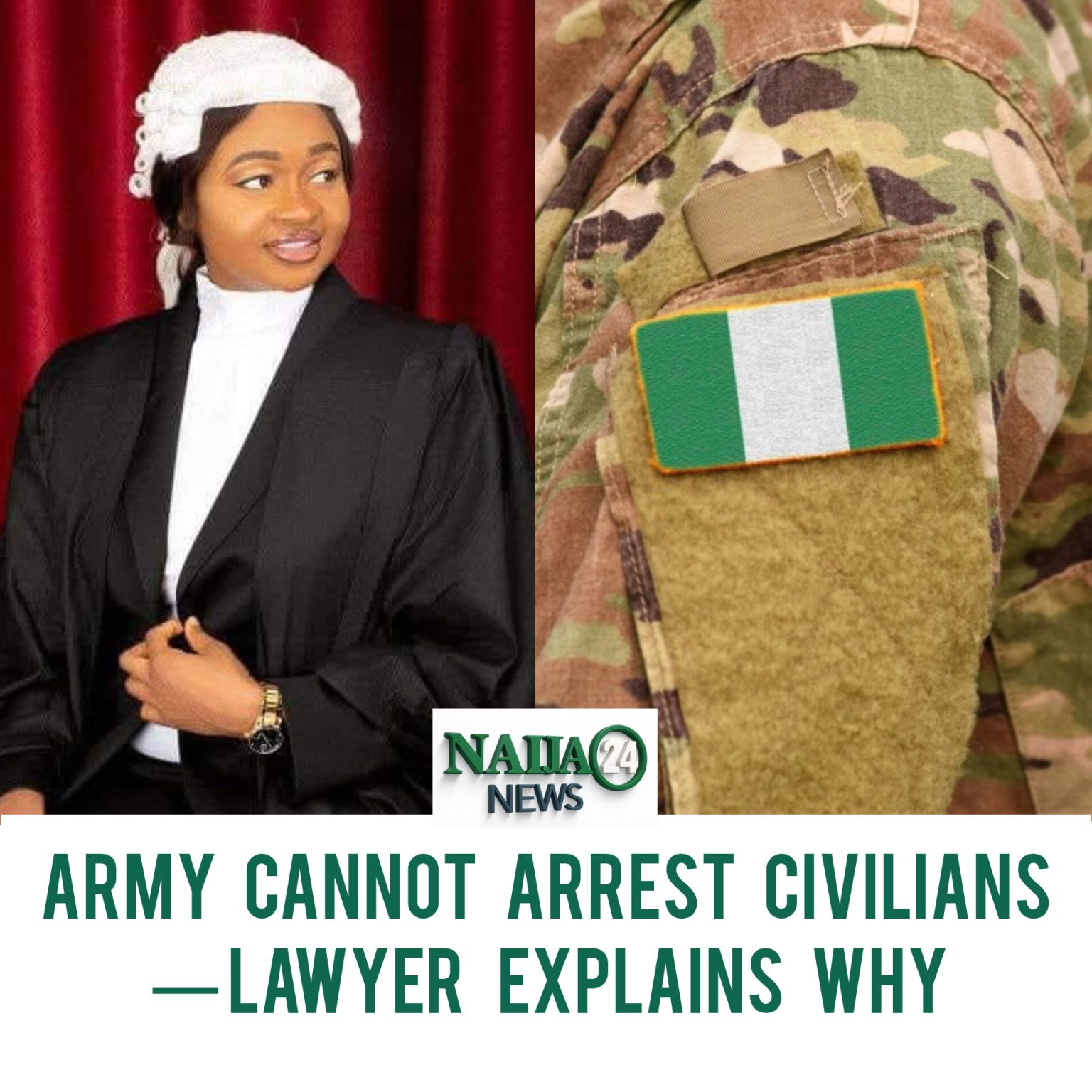 A lawyer, Stella Justice, has clarified that the army is not allowed to make arrests like the police.
