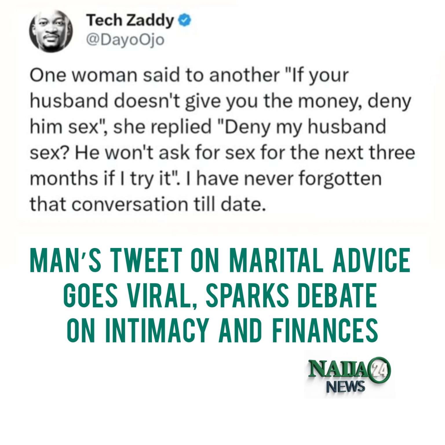 In the post, he recalled one woman advising another: “If your husband doesn’t give you the money, deny him s*x.”