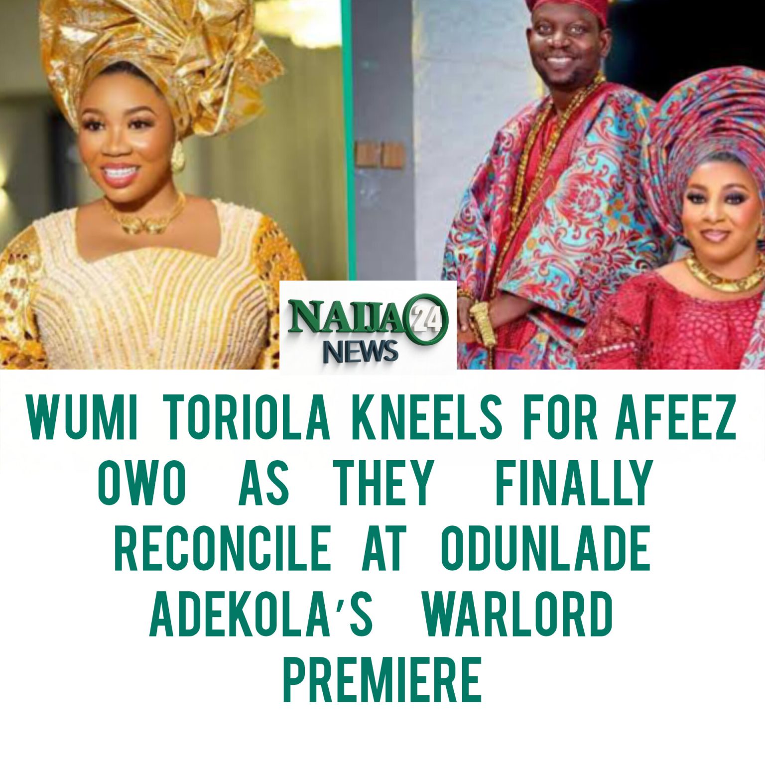 Wumi Toriola Kneels for Afeez Owo as They Finally Reconcile at Odunlade Adekola’s Warlord Premiere