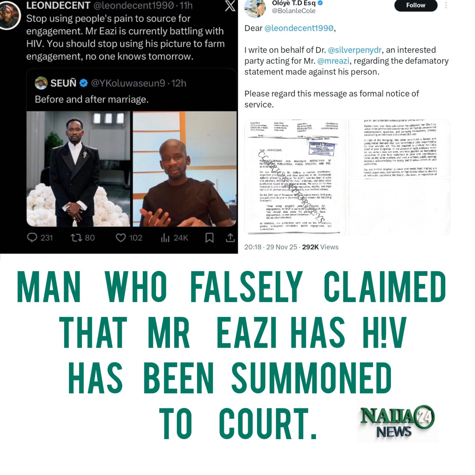 A man who recently claimed on X that singer Mr Eazi is battling H!V has been officially summoned to court. The accusation, which quickly drew attention online, was addressed swiftly by Mr Eazi’s legal team, while the singer himself has not yet commented on the matter.